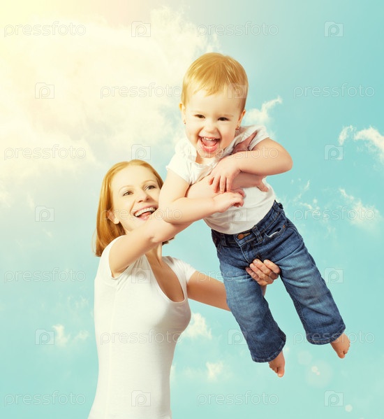 Счастливая семья. Мать бросает ребенка в небе