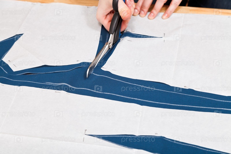 Руки вырезают ткань по выкройке