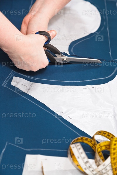 Руки вырезают ткань по выкройке