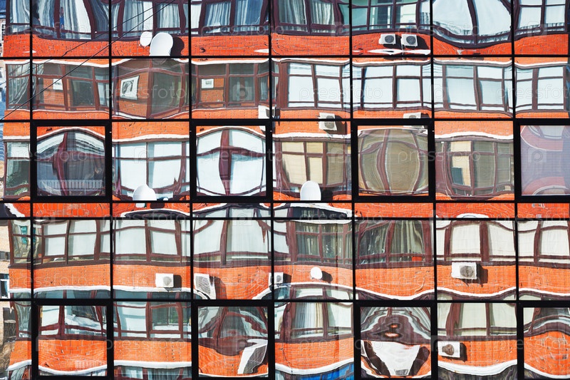 Отражение жилого дома в зеркальных окнах