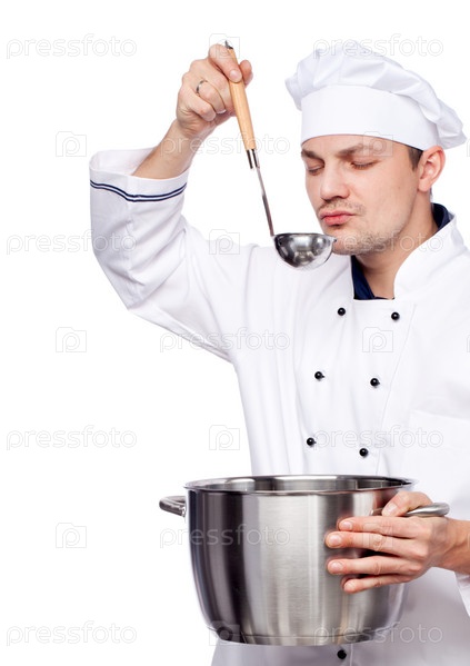 Повар с кастрюлей и поварешкой