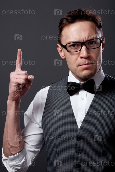 Молодой мужчина показывает вверх