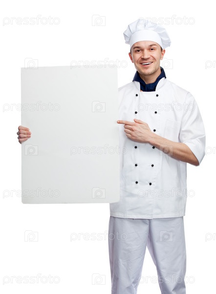 Шеф-повар с плакатом