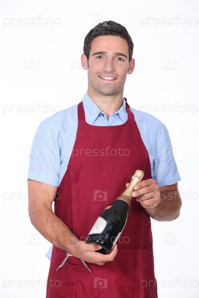 Сомелье держит бутылку шампанского