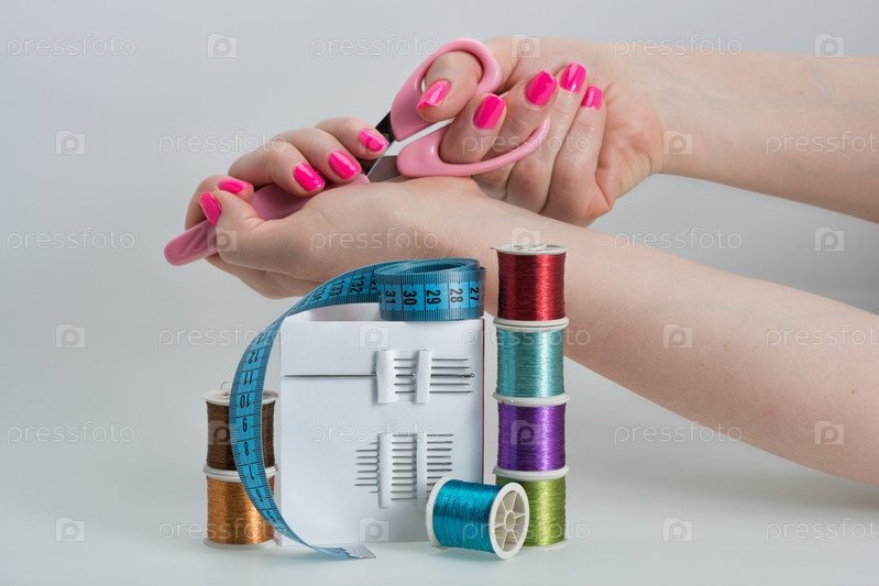 Цветные нитки, ножницы и иглы