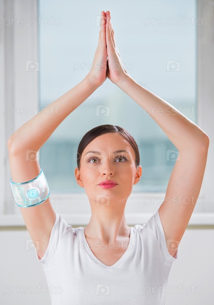 Женщина занимается йогой