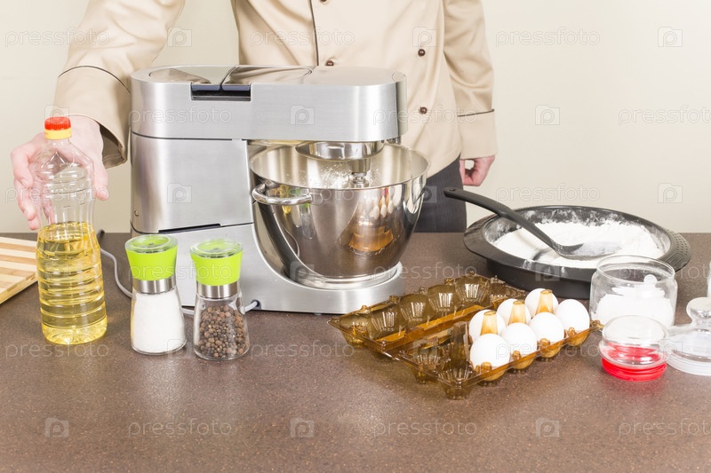 Повар замешивает тесто на блины