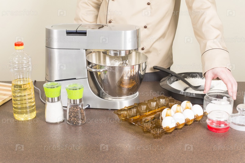 Повар замешивает тесто на блины