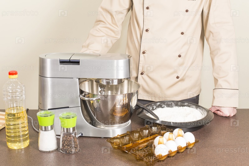 Повар замешивает тесто на блины