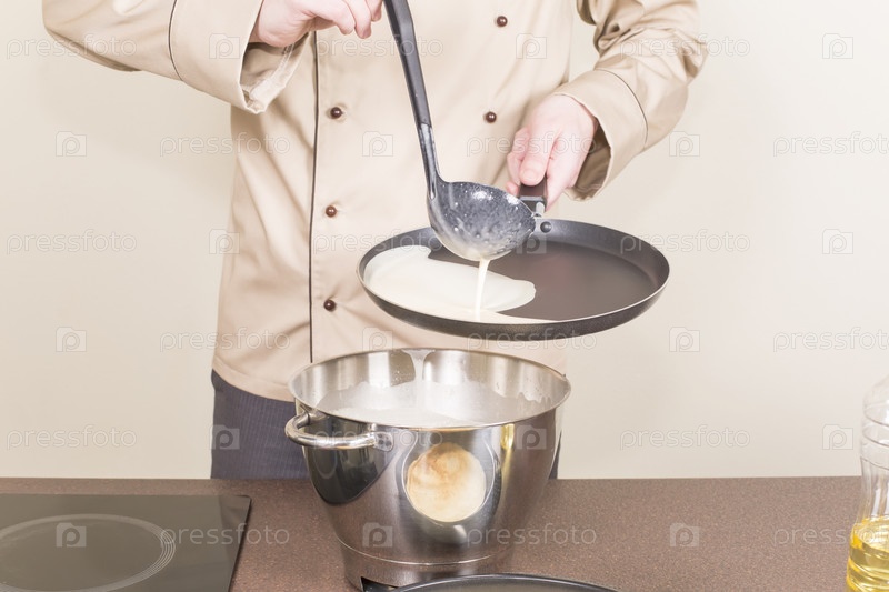 Повар готовит блины