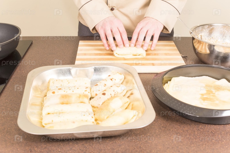 Повар готовит блины