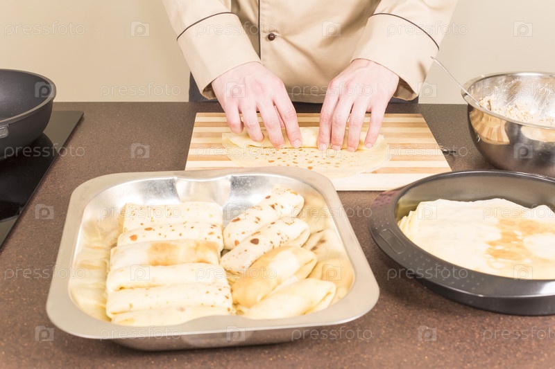 Повар готовит блины