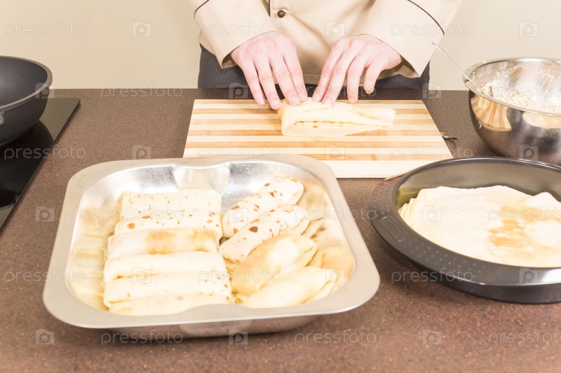 Повар готовит блины