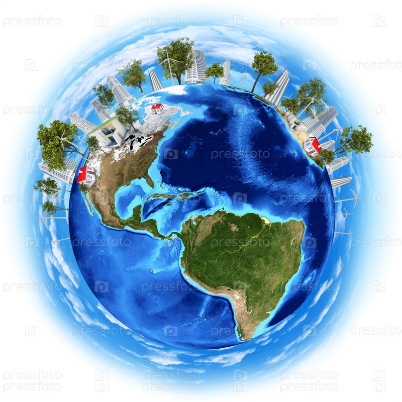 Планета Земля со зданиями на поверхности
