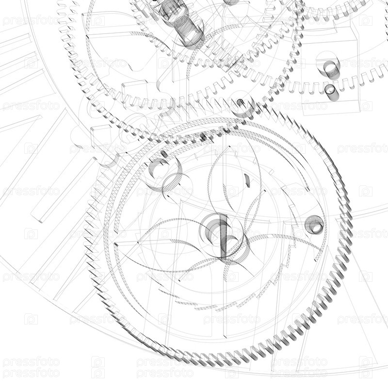 Контурный чертеж часового механизма