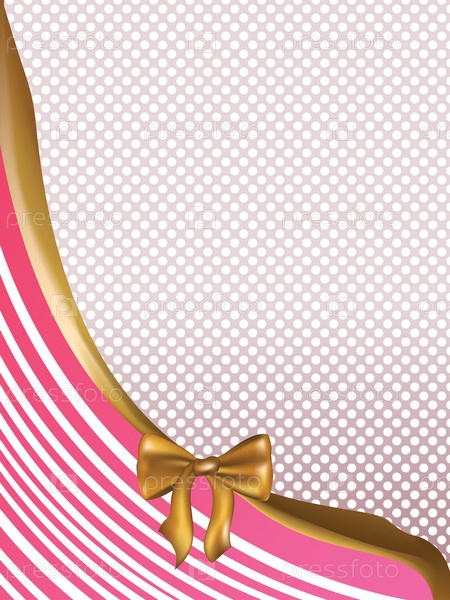 Розовая открытка с золотым бантом
