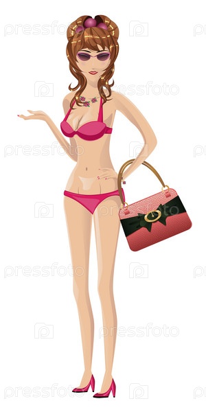 Брюнетка в розовом бикини
