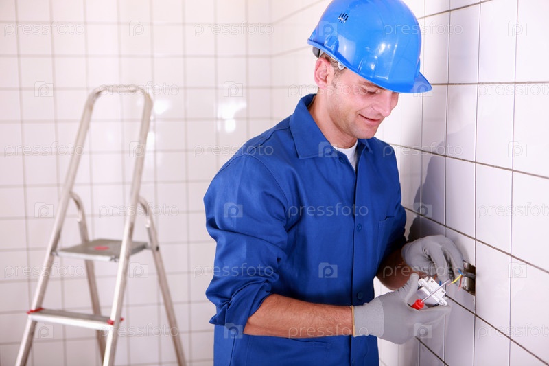 Рабочий ремонтирует электропроводку