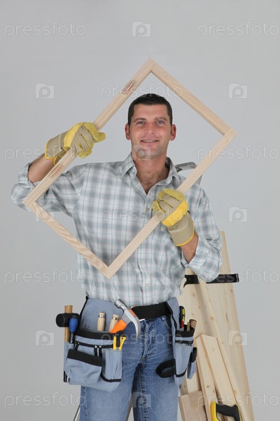 Столяр с деревянной рамой