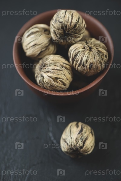 Жасминовые чайные шарики крупным планом