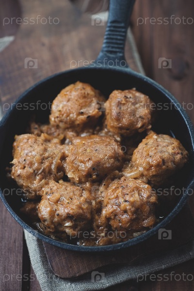 Чугунная сковорода с митболлами
