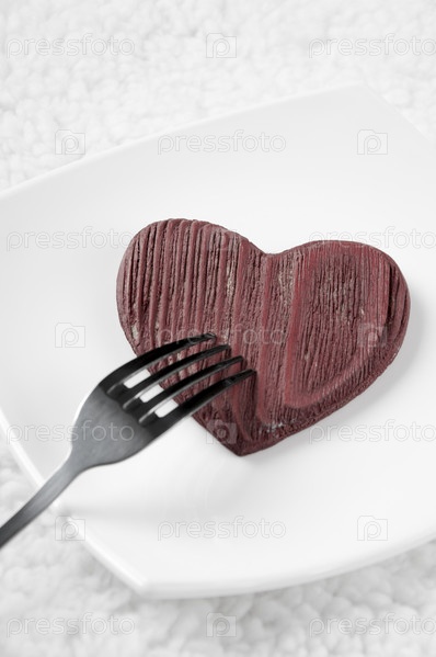 Красное деревянное сердце на тарелке крупным планом