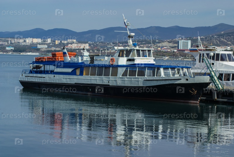 Прогулочный катер возле причала в геленджикской бухте