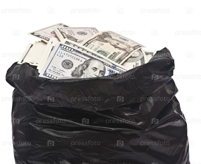 Пластиковый мешок с деньгами