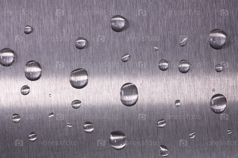 Капли воды на металлической поверхности