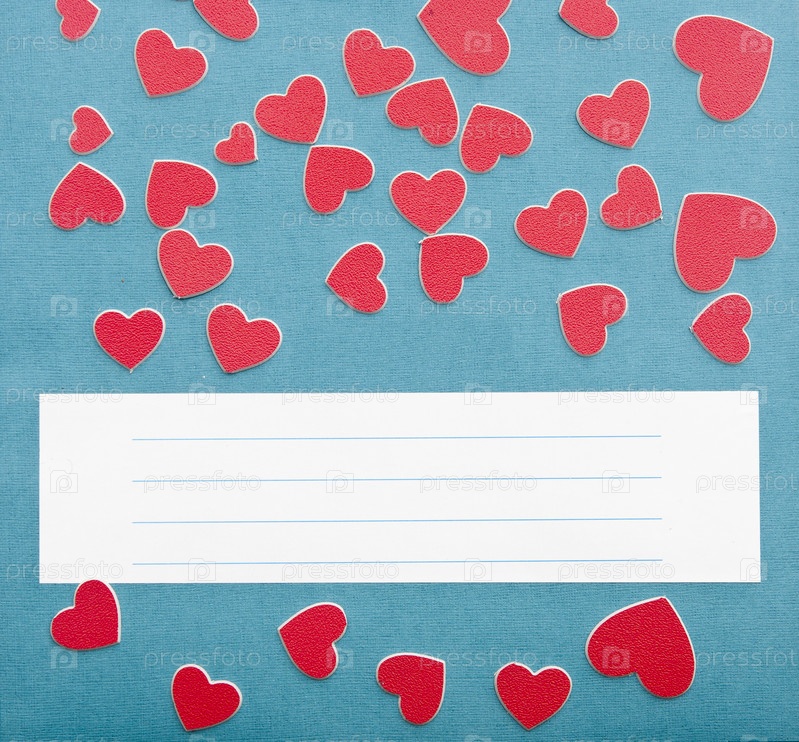 Сердечки и строки для текста на синих обоях