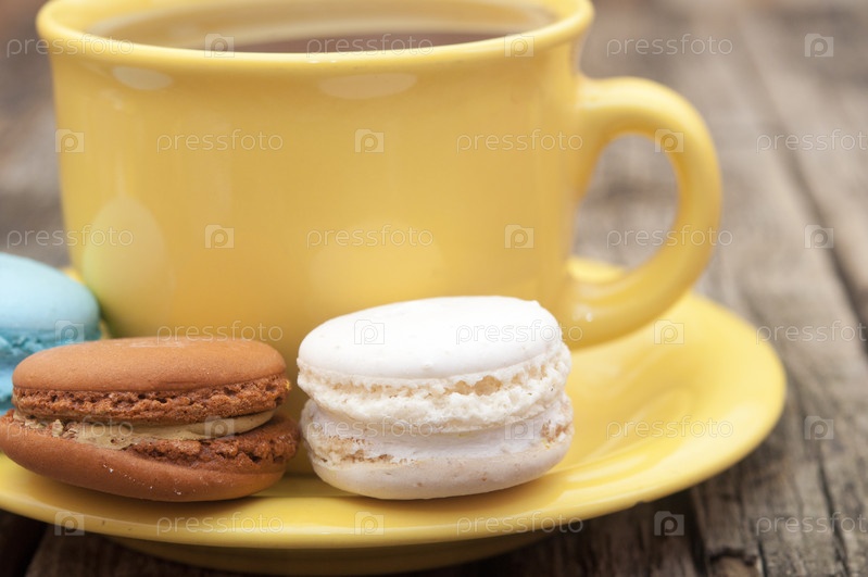 Миндальное печенье с чашечкой кофе на столе