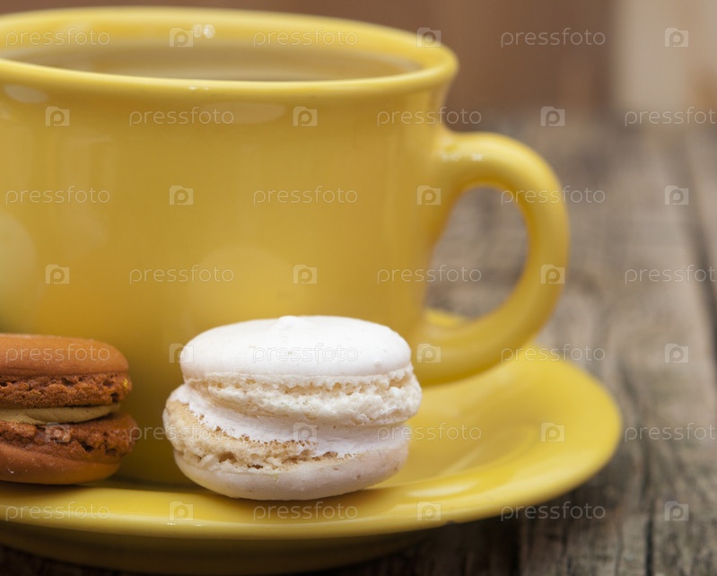 Миндальное печенье с чашечкой кофе на столе