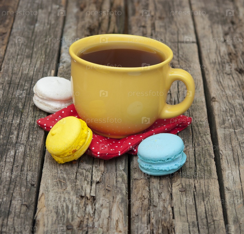 Миндальное печенье и чашка чая на столе