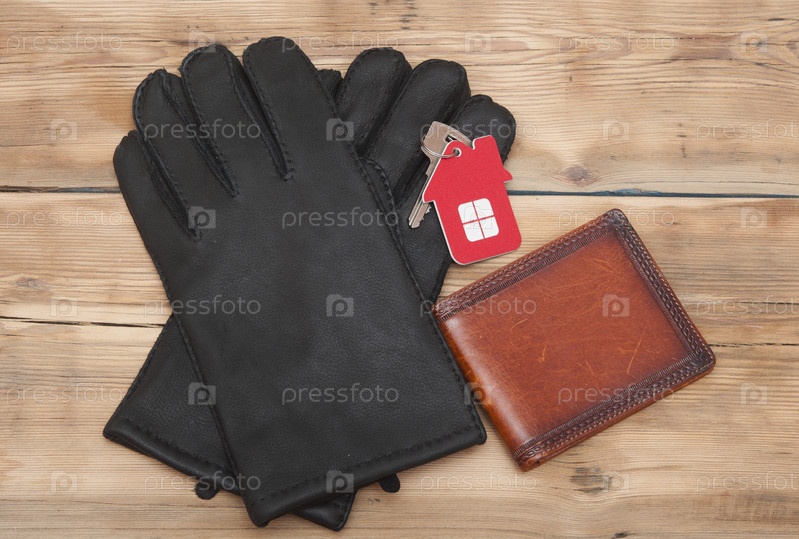 Кожаные перчатки, бумажник и ключи от дома