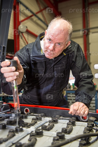 Механик проверяет аккумулятор