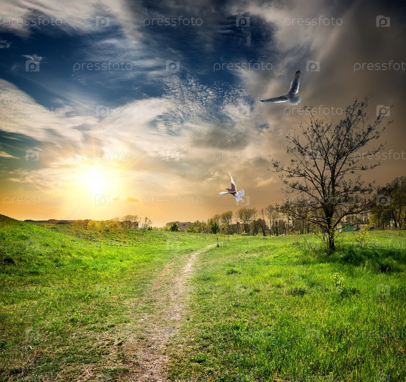 Проселочная дорога и птицы