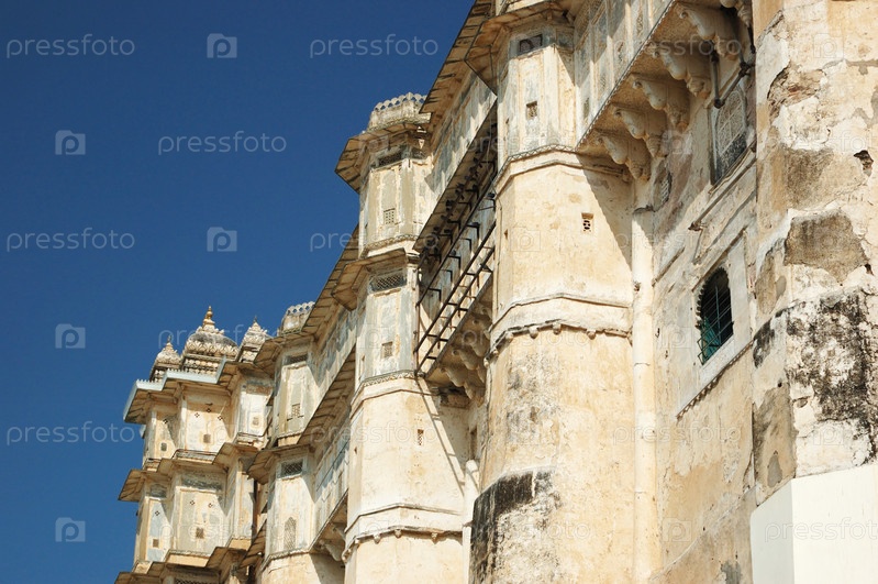 Стены дворца средневекового города, Удайпур, Раджастхан, Индия