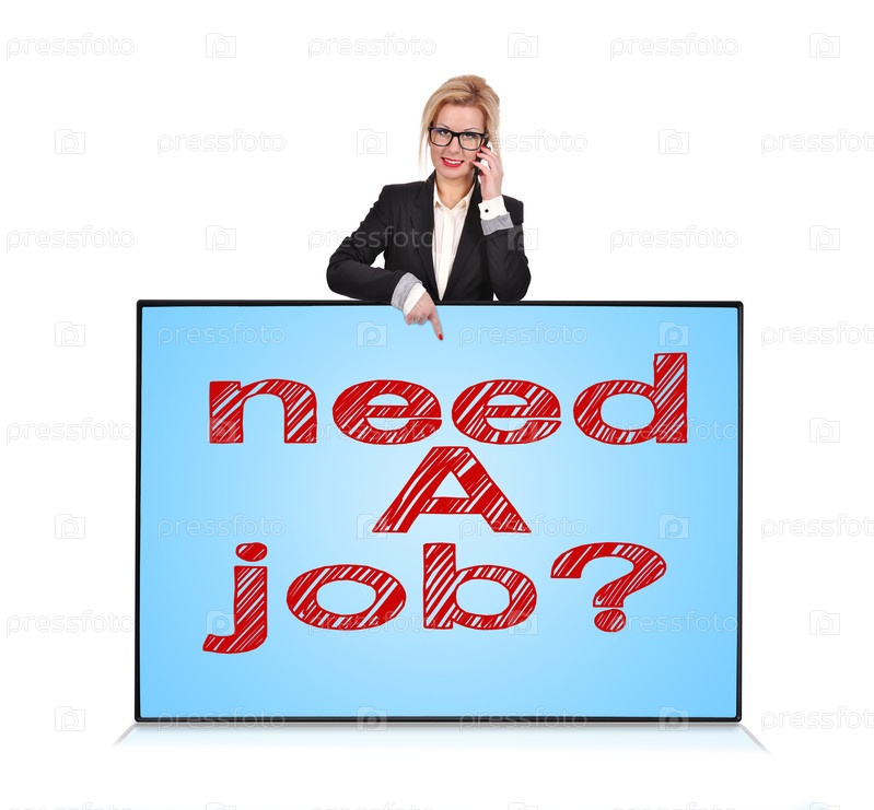 Плазменная панель с надписью "Ищете работу?"