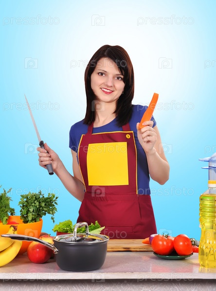Домохозяйка держит морковь