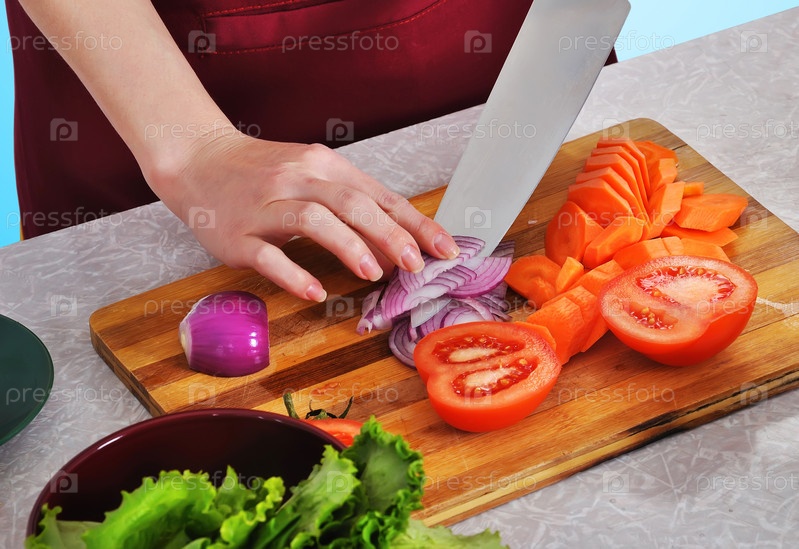 Женщина режет овощи