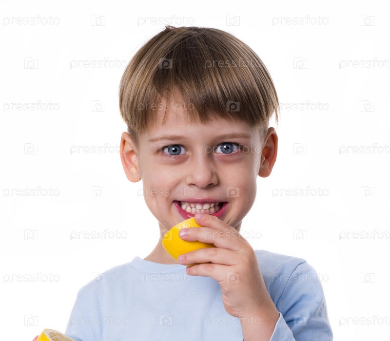 Мальчик ест лимон