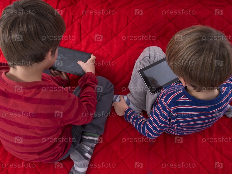 Мальчики играют на планшетах