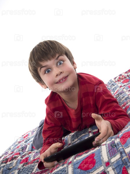 Мальчик играет на планшете