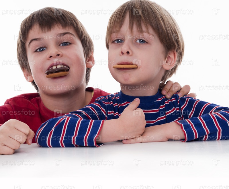 Мальчики едят печенье