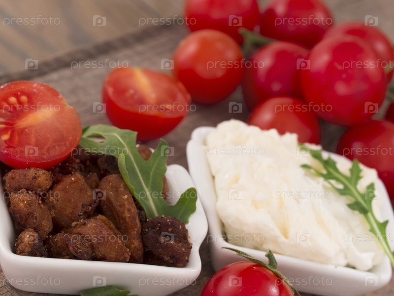 Шкварки с помидорами и сыром