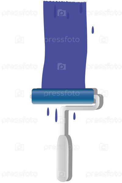 Валик с синей краской на белом фоне