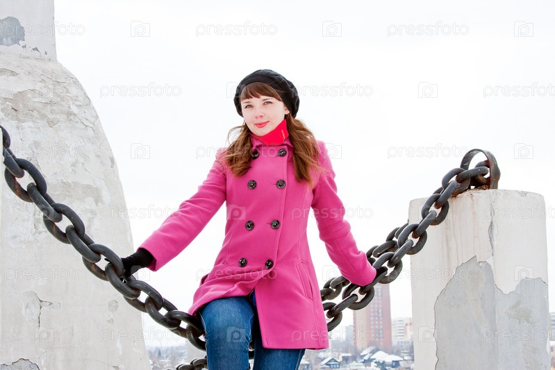 Красивая молодая женщина на крыше здания