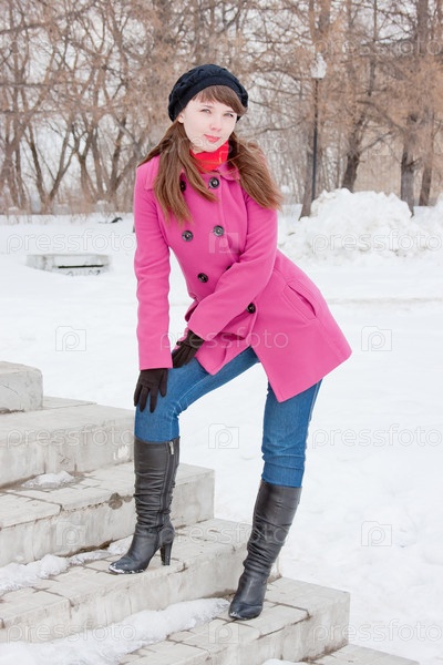 Красивая молодая женщина зимой в парке