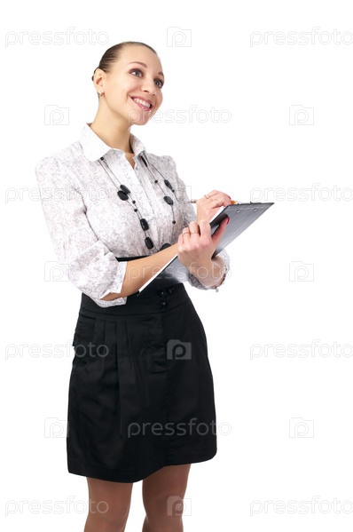 Улыбающаяся деловая девушка с документами в руках