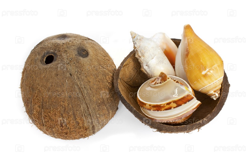 Морские ракушки в кокосовой скорлупе